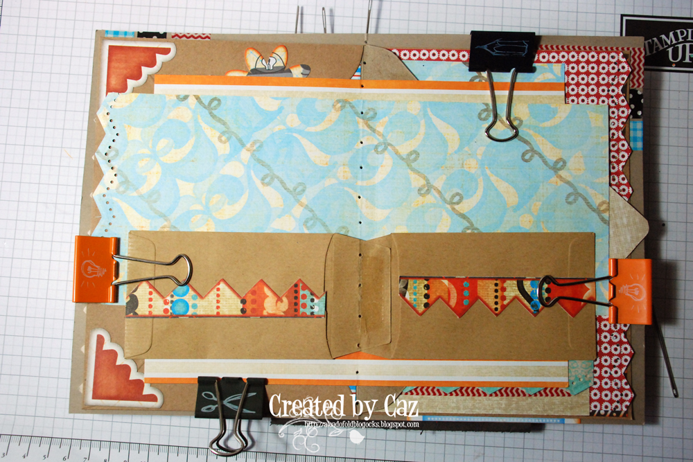 Now The the cover and insides are ready I added the clips to hold all the pages in place ready to make the holes for hand sewing the book together.